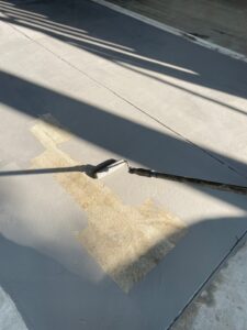 コンクリート面の吸い込みを抑え、ムラなく仕上がるようにローラーで丁寧に施工しました。