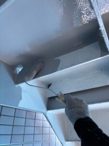 続いて、錆の再発を防ぐために防錆効果の高い「錆止め塗料」を丁寧に下塗り。